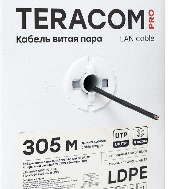 Кабель витая пара U/UTP кат.5E 4 пары 24 AWG solid внешн. LDPE черн. TERACOM PRO EKF TRP-5EUTP-04PE-BK-OUT3