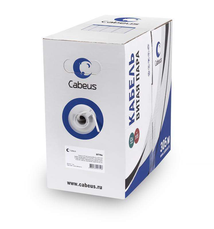 Кабель витая пара U/UTP кат.5E 4х2х24AWG solid LSZH нг(А)-HF UTP-4P-Cat.5e-SOLID-LSZH-GY сер. (уп.305м) Cabeus 9776c