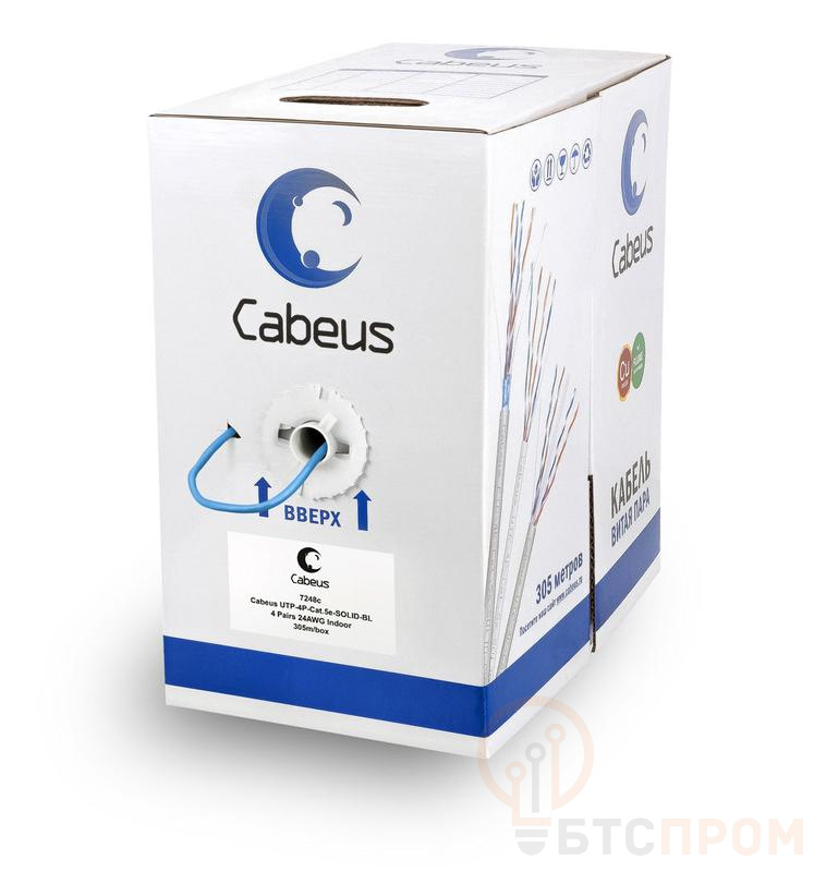 Кабель витая пара U/UTP кат.5E 4х2х24AWG solid PVC нг(А)-LS UTP-4P-Cat.5e-SOLID-BL син. (уп.305м) Cabeus 7248c