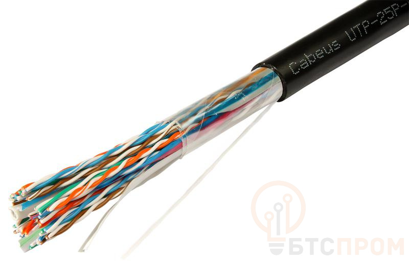 –Кабель витая пара UTP (U/UTP) кат.5 25 пар 24 AWG ОЖ solid для внешн. прокладки UV PE Cabeus 7467c