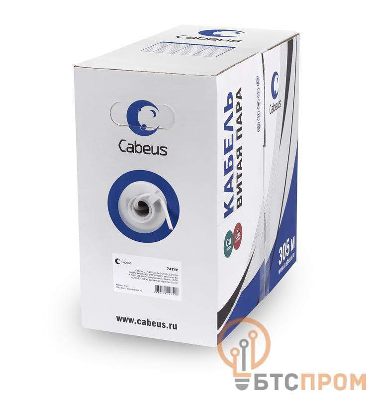 Кабель витая пара UTP (U/UTP) кат.5E 2 пары 24 AWG 0.48мм ож LSZH нг(А)-HF UTP-2P-Cat.5e-SOLID-LSZH-GY-LIGHT-500 сер. (305м) Cabeus 11079c