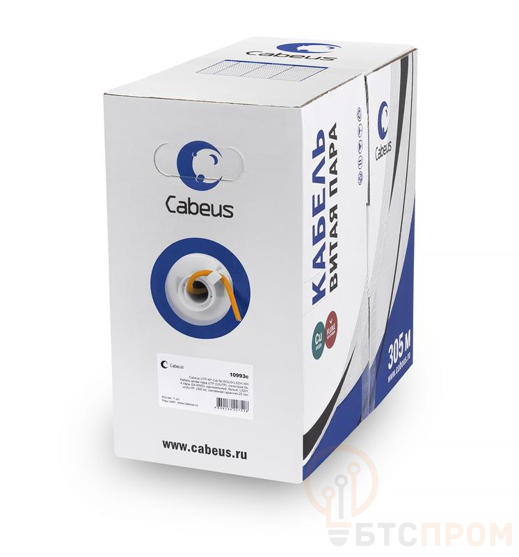 Кабель витая пара UTP (U/UTP) кат.5E 4 пары (0.48мм) 24 AWG ОЖ LSZH нг(А)-HF оранж. (уп.305м) Cabeus 10993c