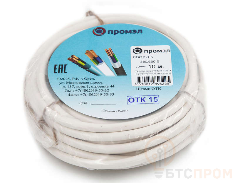 Провод ПВС 2х1.5 380В Б (бухта 10м) (шт) ПромЭл 13321490 фото в каталоге от BTSprom.by