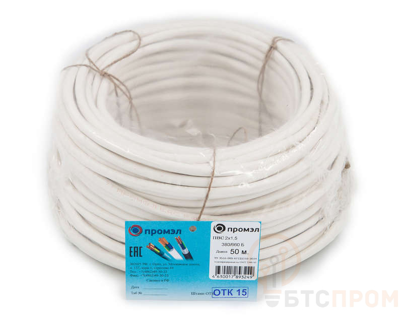 –Провод ПВС 2х1.5 380В Б (бухта 50м) (шт) ПромЭл 13321510