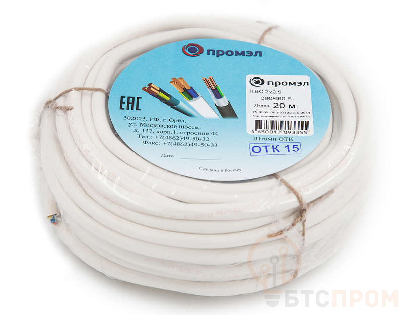 –Провод ПВС 2х2.5 380В Б (бухта 20м) (шт) ПромЭл 13321540