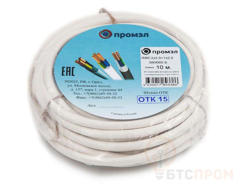 Провод ПВС 3х2.5 (2х2.5+1х2.5) 380В Б (бухта 10м) (шт) ПромЭл 13321650 фото в каталоге от BTSprom.by