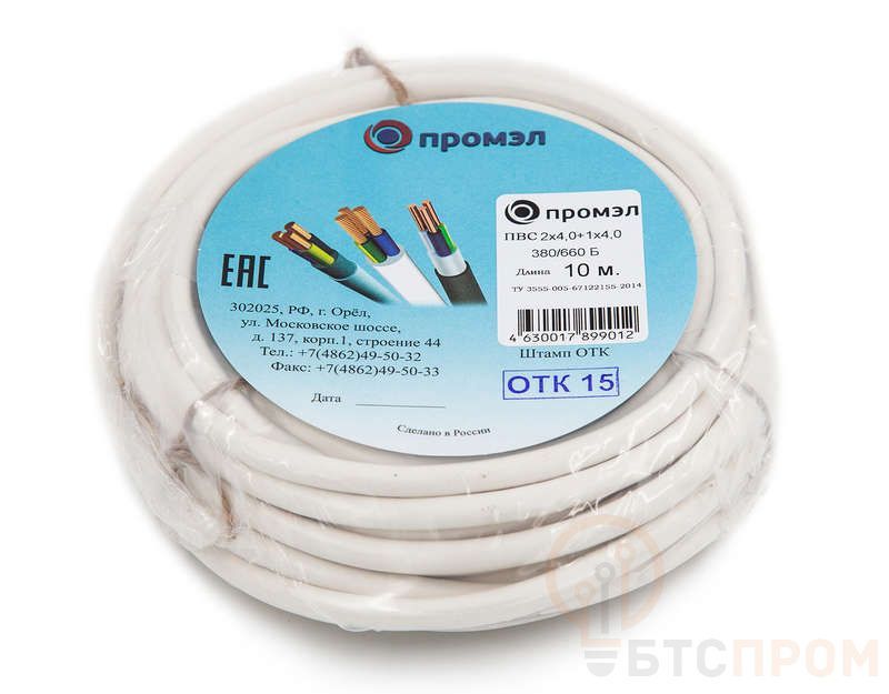 Провод ПВС 3х4 (2х4+1х4) 380В Б (бухта 10м) (шт) ПромЭл 13321690 фото в каталоге от BTSprom.by