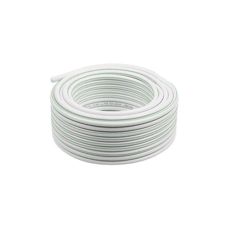 Кабель коаксиальный SAT 703B (75 Ом) PROconnect применяется для подключения спутниковых и кабельных телевизионных систем, камер видеонаблюдения и устройств, поддерживающих HDTV. Подходит для прокладки преимущественно внутри помещений. Обладает хорошими пропускными показателями и минимальным уровнем потери сигнала. Изготовлен из первичных материалов, имеет широкий диапазон рабочих температур и высокий уровень производительности. Состоит стальной проволоки, плакированной медью, находящейся в диэлектрике из вспененного полиэтилена. Поверх диэлектрика наложен экран из алюминиевой фольги, на котором располагается внешний проводник из алюминиевой проволоки в виде оплетки плотностью 75%. Материал внешней оболочки – ПВХ. Кабель белого цвета поставляется в мини-бухте длиной 50 м. Диаметр проволоки в оплетке: 0,12-0,15 мм.