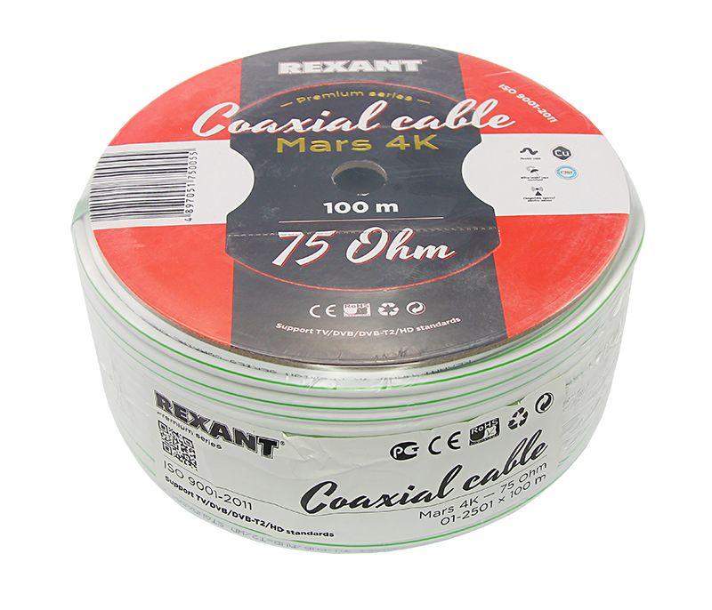Кабель MARS 4K REXANT служит для передачи высокочастотных сигналов и имеет волновое сопротивление 75 Ом. Используется в сетях TV/DVB/DVB-S2/DVB-T2/HD, локальных сетях общего назначения, кабельных сетях, телевизионных сетях, цифровом и спутниковом телевидении, а также в системах видеонаблюдения. Применяется для подключения камер видеонаблюдения и устройств, поддерживающих HDTV. Конструктивно кабель состоит из центрального одножильного проводника, изготовленного из высококлассной бескислородной меди и помещенного во вспененный полиэтиленовый диэлектрик. Поверх диэлектрика наложен экран из алюминиевой фольги, на котором располагается внешний проводник из луженой медной проволоки в виде оплетки плотностью 96%, что надежно защищает передаваемый сигнал от внешних помех. Внешняя оболочка толщиной 0,85 мм белого цвета с зеленой полосой изготовлена из ПВХ. Кабель прокладывается внутри помещений.