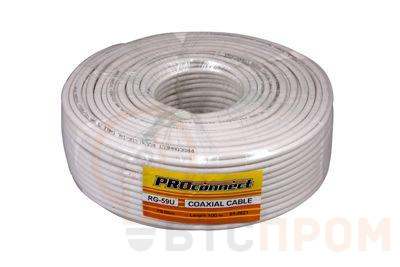 Коаксиальный кабель RG-59U PROconnect служит для передачи высокочастотных сигналов, используется для подключения спутниковых и кабельных телевизионных систем, камер видеонаблюдения и устройств, поддерживающих HDTV. Применяется при подключении внутренних и межблочных соединений различных радиотехнических устройств. Предназначен для прокладки внутри помещений. Центральный проводник изготовлен из стали плакированной медью, окружен диэлектриком из вспененного полиэтилена. Поверх диэлектрика наложен экран из алюминиевой фольги, на котором располагается внешний проводник из алюминиевой проволоки в виде оплетки плотностью 48%. Внешняя оболочка выполнена из ПВХ. Цвет – белый. Кабель отличается долгим сроком службы,поставляется в бухте длиной 100 м. Диаметр проволоки экрана: 0,12-0,15 мм.