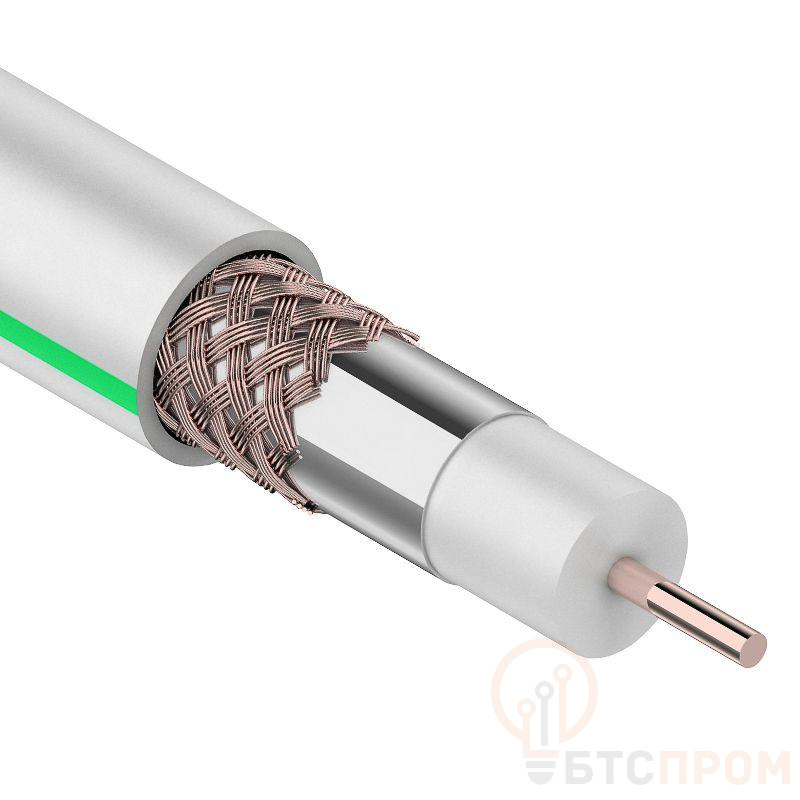 Кабель коаксиальный телевизионный SAT 703 B 75 Ом REXANT представляет собой распространенное решение для подсоединения внутренних и межблочных соединений общепромышленных и бытовых радиотехнических устройств, спутниковых и кабельных телевизионных систем, а также для подключения камер видеонаблюдения и устройств, поддерживающих HDTV. Длина – 100 метров, цвет – белый. Предназначен для прокладки внутри помещений. Отличается высоким качеством передачи информации. Обладает такими преимуществами как долгий срок службы, надежность материалов и высокий уровень производительности. Состоит из медного проводника в диэлектрике из вспененного полиэтилена. Поверх диэлектрика наложен экран из алюминиевой фольги, на котором располагается внешний проводник из медной проволоки в виде оплетки. Материал внешней оболочки – ПВХ. Диаметр проволоки в оплетке: 0,12-0,15 мм.