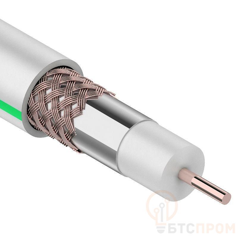 Кабель коаксиальный радиочастотный SAT 703 B 75 Ом СМАРТКИП применяется для подключения спутниковых и кабельных телевизионных систем, а также для подключения камер видеонаблюдения и устройств, поддерживающих HDTV. Подходит для прокладки преимущественно внутри помещений. Обладает хорошими пропускными показателями и минимальным уровнем потери сигнала. Изготовлен из первичных материалов, имеет широкий диапазон рабочих температур и высокий уровень производительности. Состоит из медного проводника в диэлектрике из вспененного полиэтилена. Поверх диэлектрика наложен экран из алюминиевой фольги, на котором располагается внешний проводник из медной проволоки в виде оплетки. Материал внешней оболочки – ПВХ. Длина провода – 100 метров, цвет – белый. Диаметр проволоки в оплетке: 0,12-0,15 мм.
