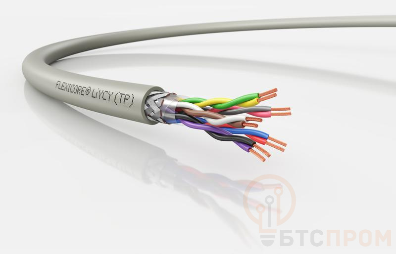 FLEXICORE® LiYCY (TP) –низкочастотные эрканированные кабели управления с изоляцией и оболочкой из ПВХ с парной скруткой жил. Кабели предназначены для управления и передачи сигнала в электронике для вычислительных устройств, электронных приборов управления и контроля, офисного оборудования, весов и т. д. Кабели соответствуют климатическому исполнению У категории 1, 1.1, 2, 2.1, 3, 3.1, 4, 4.1, 4.2 по ГОСТ 15150 для наружного и внутреннего применения. Экран высокой плотности 85%.