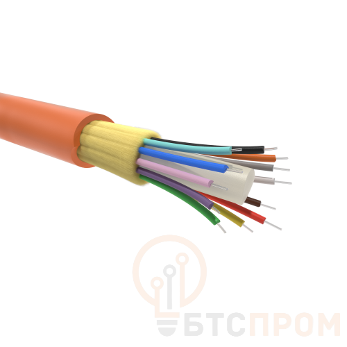 Кабели OM2 с волокнами в плотном буфере 900 мкм в исполнении нг(А) не распространяют горение при групповой прокладке при испытании по ГОСТ IEC 60331-23 с объёмом горючей массы неметаллических элементов конструкции 7,0 л/м3 (класс А). Кабели обладают низкой дымообразующей способностью: снижение светопропускания в режиме горения и тления не превышает 40% при испытании по ГОСТ IEC 61034-2. Количество волокон - 12. Волоконно-оптический кабель cоответствуют рекомендациям ITU-T G.651.1