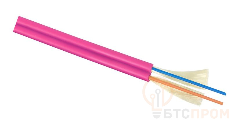 Кабель волоконно-оптический 50/125 (OM4) многомод. 2 волокна плотное буферное покрытие (tight buffer) zip cord для внутр. прокладки -25-+50град.C LSZH маджента RAL 4010 Cabeus 9223c