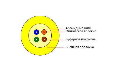 Кабель волоконно-оптический 9/125 одномод. 4 волокна плотное буферное покрытие (tight buffer) для внутр.прокладки (-25 до +50град.C) LSZH желт. (F90040412Y) Cabeus 7711c
