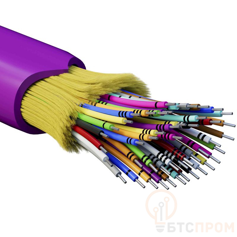 Кабель волоконно-оптический, распределительный, применяется для обеспечения связи между кроссовыми полями и внутри здания. Под внешней оболочкой размещены арамидные упрочняющие нити, повышающие устойчивость к растягивающим нагрузкам не утяжеляя кабель. Оболочка безгалогенная, соответствует классу нг(А)-HFLTx, что позволяет применять кабель в помещениях с высокими требованиями пожарной безопасности, включая больницы, дома престарелых, школы и места массового пребывания людей. Кабель содержит 48 многомодовых оптических волокон в плотном буфере 900мкм, категория OM4 (G.651.1). Поставляется на фанерной катушке.