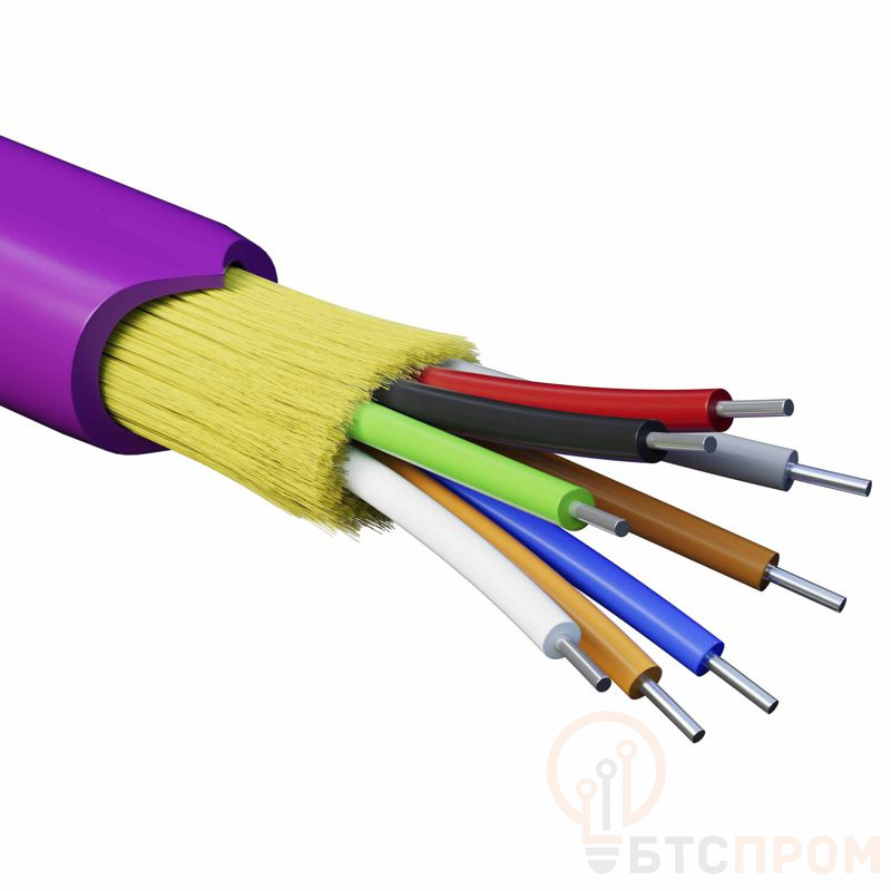 Кабель волоконно-оптический, распределительный, применяется для обеспечения связи между кроссовыми полями и внутри здания. Под внешней оболочкой размещены арамидные упрочняющие нити, повышающие устойчивость к растягивающим нагрузкам не утяжеляя кабель. Оболочка безгалогенная, соответствует классу нг(А)-HFLTx, что позволяет применять кабель в помещениях с высокими требованиями пожарной безопасности, включая больницы, дома престарелых, школы и места массового пребывания людей. Кабель содержит 6 многомодовых оптических волокон в плотном буфере 900мкм, категория OM4 (G.651.1). Поставляется на фанерной катушке.