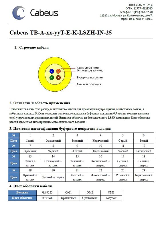 Кабель волоконно-оптический TB-A-4-04T-E-K-LSZH-IN-25 50/125 (OM3) многомод. 4 волокна плотн. буферн. покрытие (tight buffer) для внутр. прокладки -25 +50град.C LSZH (F40040415Z) голуб. (м) Cabeus 7804c