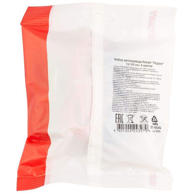 Набор автопровода "Радуга" 1х1.0мм 6 цветов (бел.; жел.; зел.; красн.; син.; черн.) по 3м (уп.6шт) Rexant 01-6549