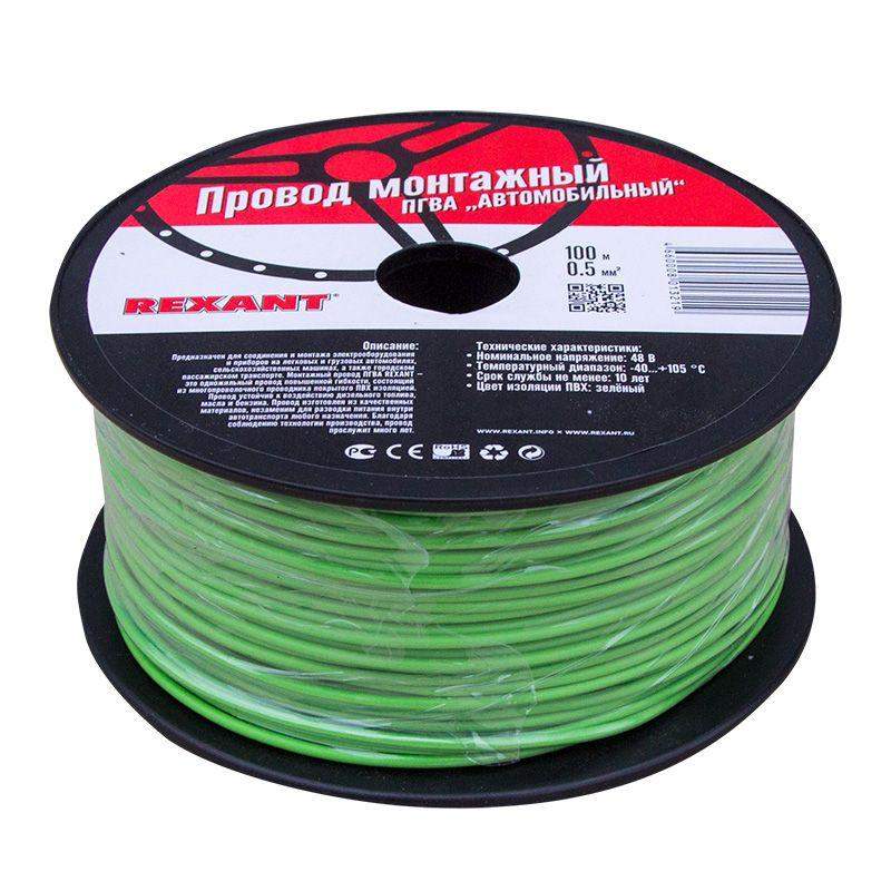 –Провод ПГВА 0.5 З бухта (м) Rexant 01-6513