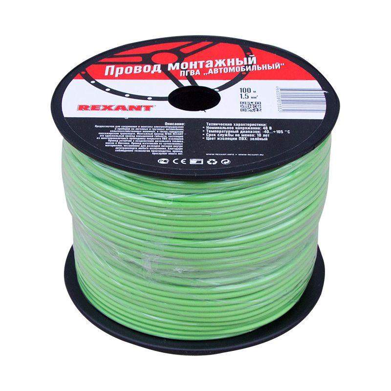 –Провод ПГВА 1.5 З бухта (м) Rexant 01-6533