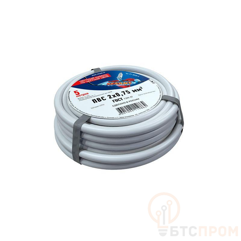 –Провод ПВС 2x0.75 Б (уп.5м) Rexant 01-8030-5