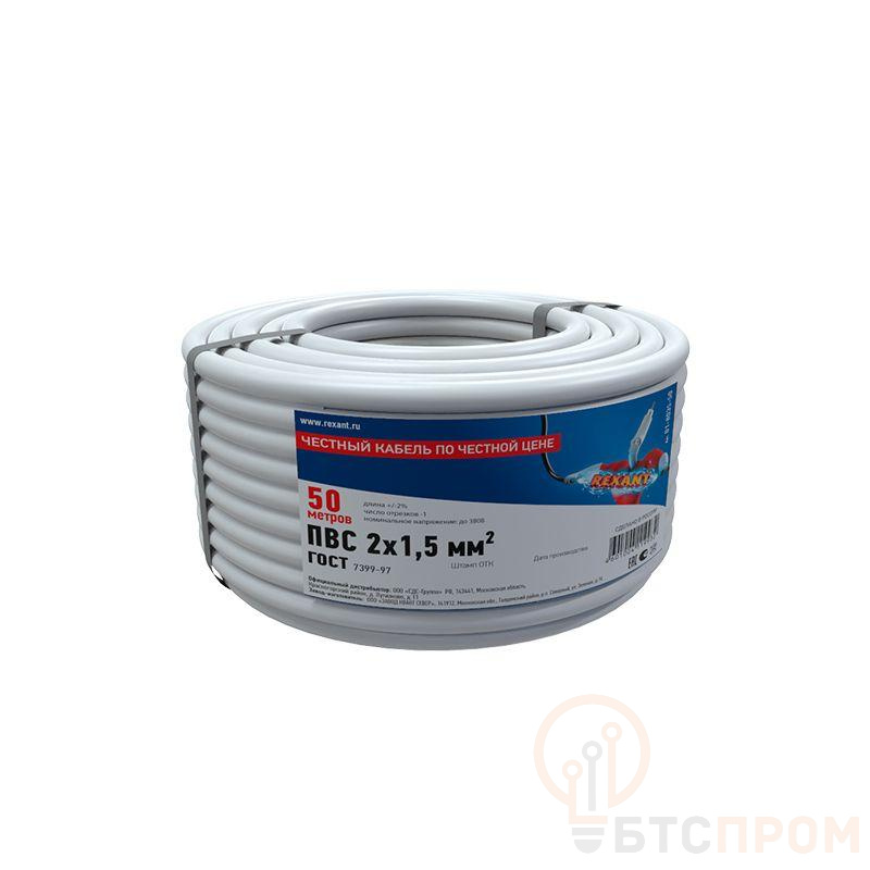 Провод ПВС 2x1.5 Б (уп.50м) Rexant 01-8035-50 фото в каталоге от BTSprom.by