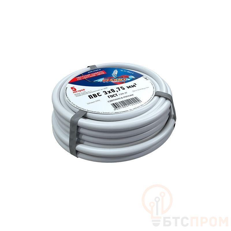 Провод ПВС 3x0.75 Б (уп.5м) Rexant 01-8042-5 фото в каталоге от BTSprom.by