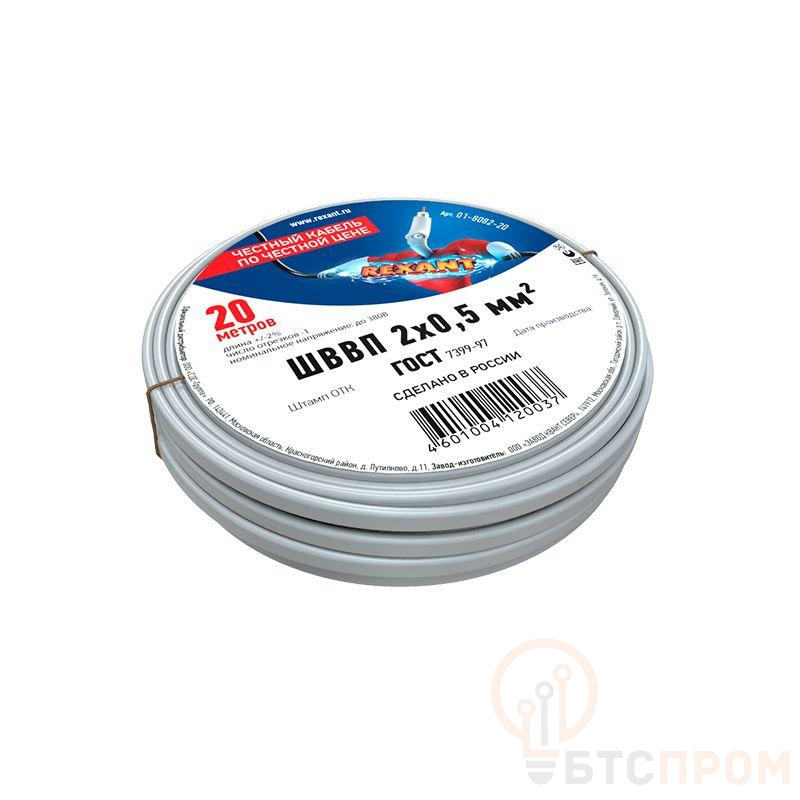 Провод ШВВП 2х0.5 (уп.20м) Rexant 01-8082-20 фото в каталоге от BTSprom.by
