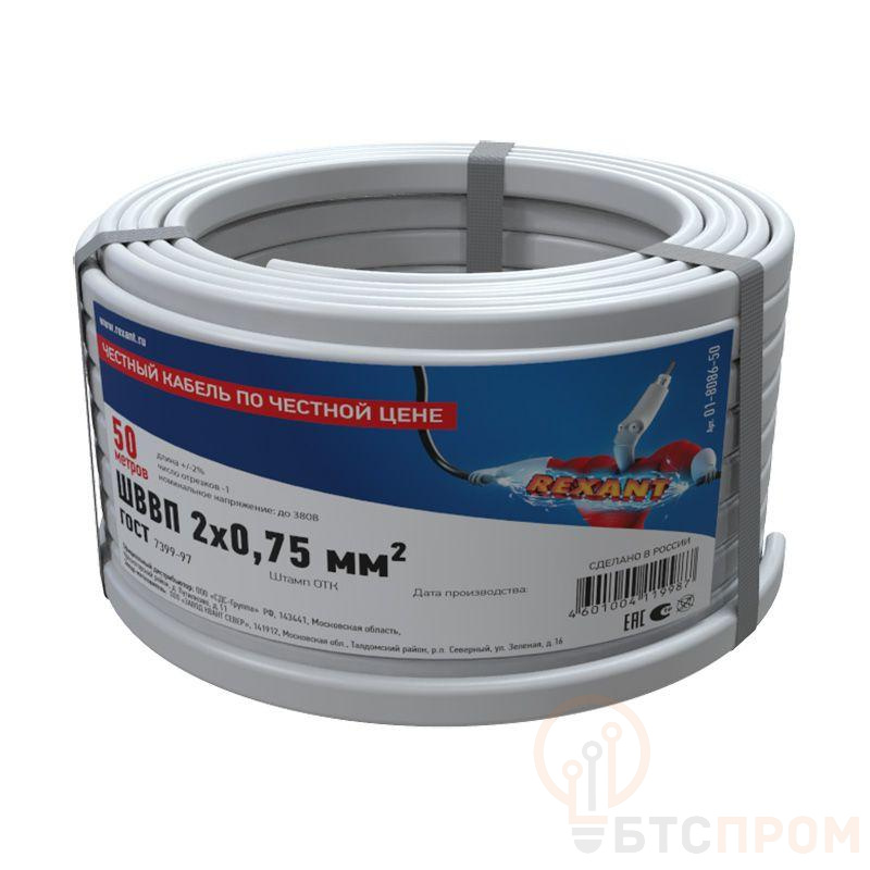 Провод ШВВП 2х0.75 (уп.50м) Rexant 01-8086-50 фото в каталоге от BTSprom.by
