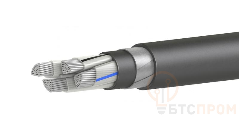 кабель силовой с 4 алюминиевыми многопроволочными жилами секторой формы сечением 70 миллиметров квадратных, с изоляцией из сшитого полиэтилена и защитным шлангом из полиэтилена в броне из двух стальных оцинкованных лент на напряжение 1 кВ.