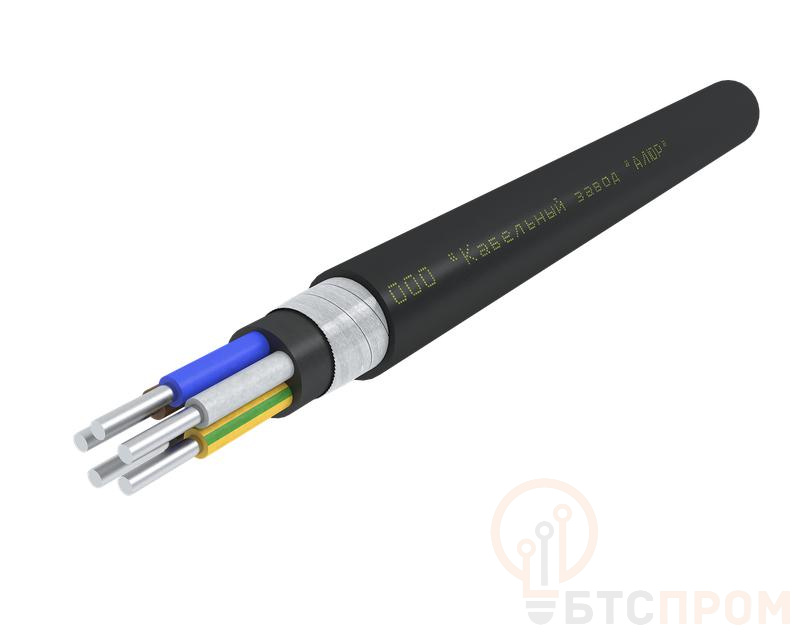 Конструкция: пять алюминиевых жил сечением 50 мм², изоляция и оболочка из ПВХ-пластиката. Броня выполнена из двух стальных оцинкованных лент, что обеспечивает высокую механическую прочность и защиту от повреждений. Кабель устойчив к воздействию влаги, может прокладываться в земле (траншеях), на открытом воздухе и в кабельных сооружениях.