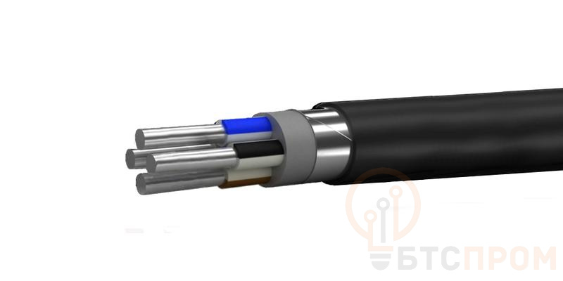 кабель силовой с 4 алюминиевыми однопроволочными жилами круглой формы сечением 4 миллиметра квадратных, с изоляцией из поливинилхлоридного пластиката и защитным шлангом из поливинилхлоридного пластиката пониженной горючести в броне из одной стальной оцинкованной ленты на напряжение 0,66 кВ..