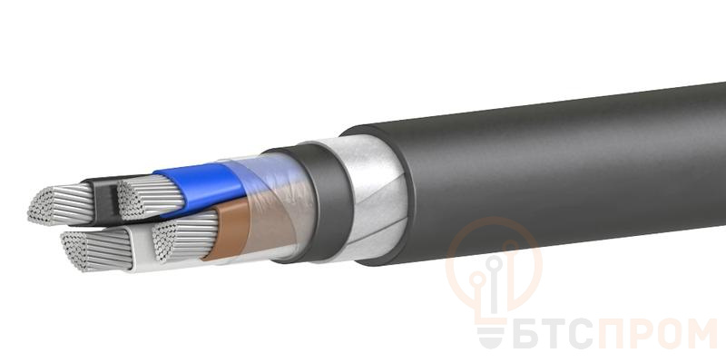 кабель силовой с 4 алюминиевыми многопроволочными жилами секторной формы сечением 95 миллиметров квадратных, с изоляцией из поливинилхлоридного пластиката и защитным шлангом из поливинилхлоридного пластиката пониженной горючести в броне из двух стальных оцинкованных лент на напряжение 1 кВ.