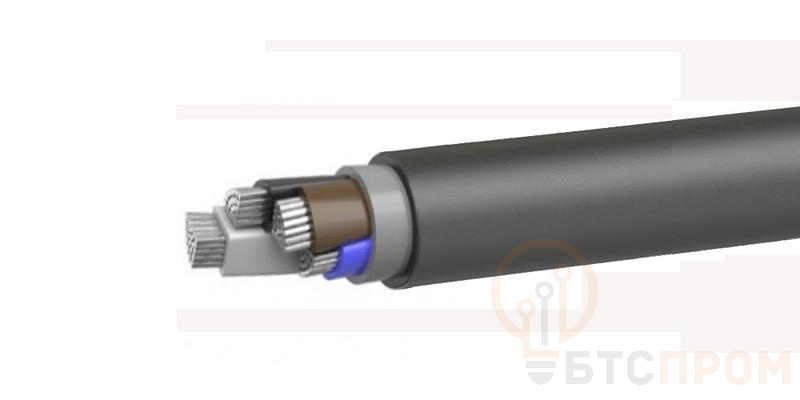 кабель силовой с 4 алюминиевыми многопроволочными жилами секторой формы сечением 240 миллиметров квадратных, с изоляцией и оболочкой из поливинилхлоридного пластиката пониженной пожарной опасности на напряжение 1 кВ.