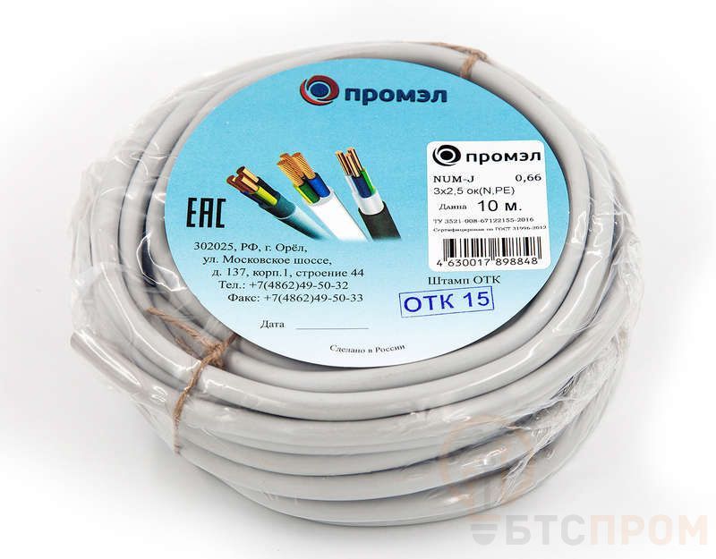 кабель num-j 3х2.5 (бухта 5м) (шт) промэл 13321400 от BTSprom.by