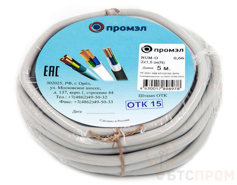 Кабель NUM-O 2х1.5 (бухта 5м) (шт) ПромЭл 13321280 фото в каталоге от BTSprom.by