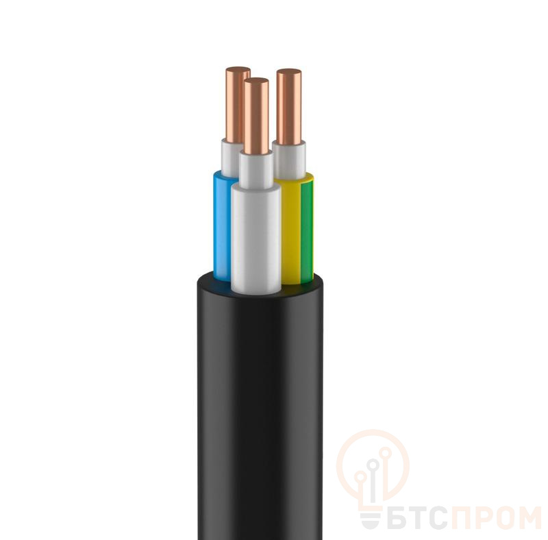 Конструкция кабеля включает три медные жилы сечением 2.5 мм², одна из которых выполняет функцию нулевого рабочего (N) и нулевого защитного (PE) проводника. Изоляция и оболочка из полимерных композиций на основе сшитого полиэтилена обеспечивают долговечность и надежность.