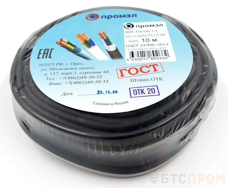 Кабель ВВГ-Пнг(А)-LS 3х1.5 (N PE) 0.66кВ (уп.10м) ПромЭл 13321850 фото в каталоге от BTSprom.by
