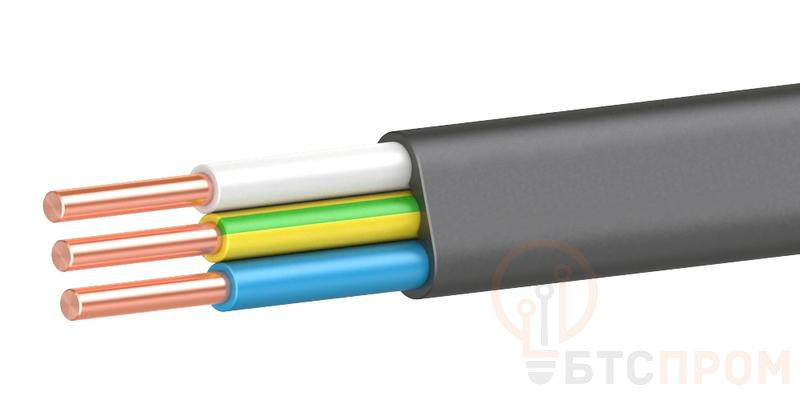 кабель силовой с 3 медными однопроволочными круглыми жилами сечением 6 миллиметра квадратных, с изоляцией и оболочкой из поливинилхлоридного пластиката пониженной пожарной опасности с низкой токсичностью продуктов горения на напряжение 0,66 кВ в плоском исполнении.