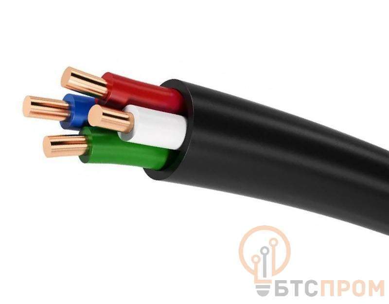 кабель силовой с 4 медными однопроволочными жилами круглой формы сечением 35 миллиметров квадратных, с изоляцией и оболочкой из поливинилхлоридного пластиката пониженной пожарной опасности на напряжение 0,66 кВ.