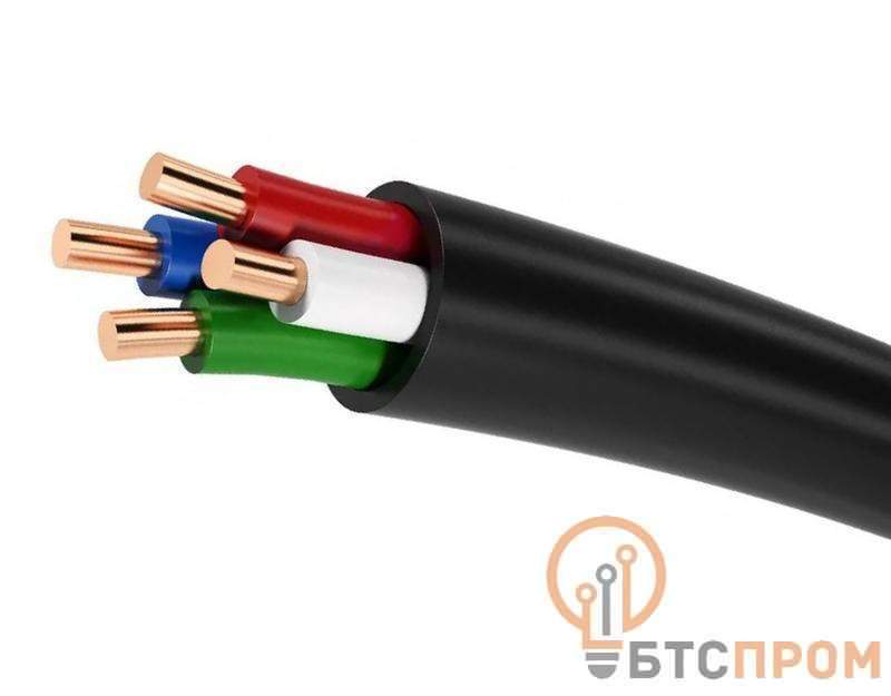 кабель силовой с 4 медными однопроволочными жилами круглой формы сечением 2,5 миллиметра квадратных, с изоляцией и оболочкой из поливинилхлоридного пластиката пониженной пожарной опасности с низкой токсичностью продуктов горения на напряжение 0,66 кВ.