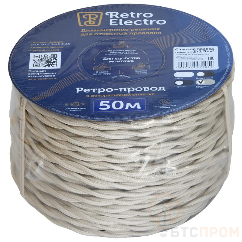 Ретро провод RetroElectro 2х1.5 «Слоновая кость» — это современный кабель для стационарной электропроводки, выполненный в популярном винтажном стиле. Жилы из меди сечением 1.5 мм² надежно изолированы и скручены в единый шнур, что обеспечивает безопасность и стабильность работы.