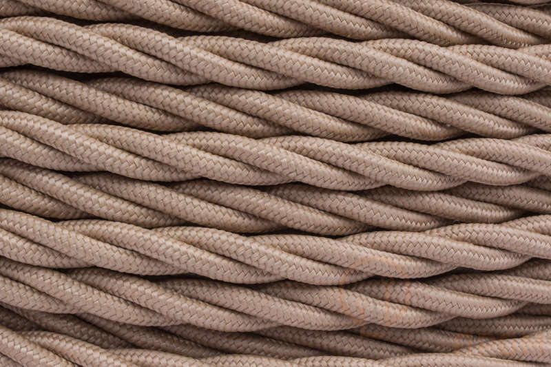 Каждая жила изолирована ПВХ, общая оплетка выполнена из негорючего матового шелка бежево-коричневых оттенков, имитирующих винтажный шнур. Провод поставляется в удобной бухте по 10 метров.