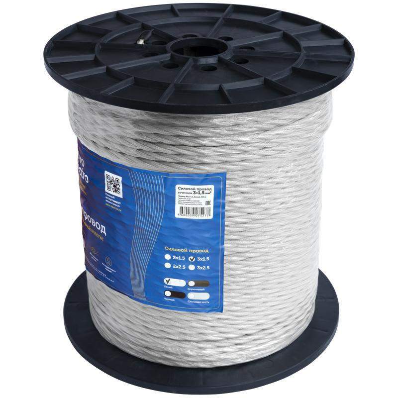 Ретро провод RetroElectro 3х1.5 бел. – это современный кабель для создания стильных и безопасных электропроводок в интерьерах, оформленных в винтажном, лофт или кантри стиле. Изделие имеет три медные жилы сечением 1.5 мм², что позволяет использовать его для подключения мощных светильников, розеток и другого стационарного электрооборудования.