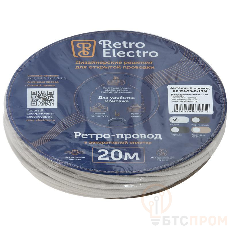 Провод ретро антенный TV белый от бренда RetroElectro (артикул 2254743) – это классическое решение для организации эфирного телевизионного приема. Кабель поставляется в удобной упаковке длиной 20 метров, что позволяет без труда осуществить монтаж на значительные расстояния.