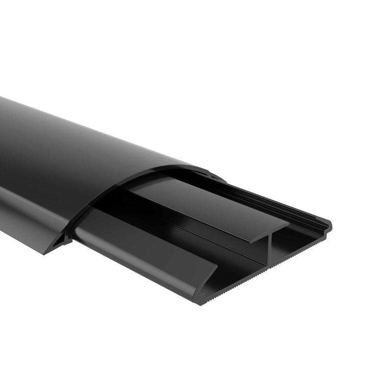 Напольные кабельные короба CSP-F. Назначение: прокладка кабелей по полу. Условия монтажа: для стыковки коробов с аксессуарами, напольными башенками BUS и с алюминиевыми колоннами серии "Aero" необходимо срезать мягкие вставки на крышках короба (по 5 мм с каждой стороны) для ввода крышку короба внутрь. Характеристики: короб имеет внутри 2 отсека; мягкие боковые вставки на крышках (герметизация и амортизация); выпускается в отрезках длиной 2 метра. Типоразмер: 50х12 мм. Цвет: Черный