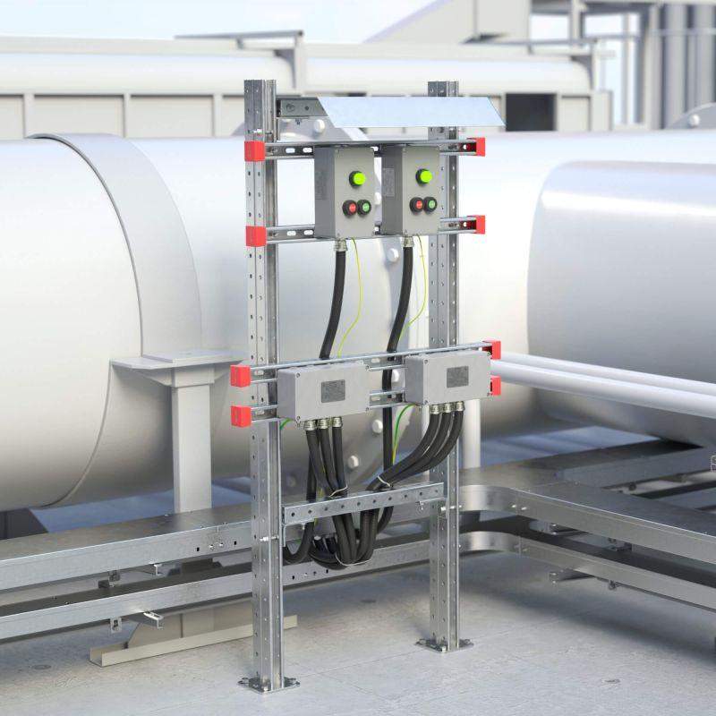 Комплект монтажных профилей обжимной тип 2 обхват конструкции 350х400мм высота подвесной рамы-профиля 1000мм для крепления 1 оболочки(ек) одного типоразмера с видом защиты Ex d гор. оцинк. DKC EX-TRF040510U