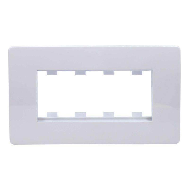 Каркас в сборе с рамками под 4 модуля электроустановочных изделий "Viva". Назначение: организация рабочего места. Условия монтажа: электроустановочное изделие серии "Viva" монтируется в каркас защелкиванием; каркас в коробку монтируется саморезом; рамка на каркас – защелкиванием. Характеристики: материал – АБС-пластик. Комплектация: каркас; рамка. Цвет белый